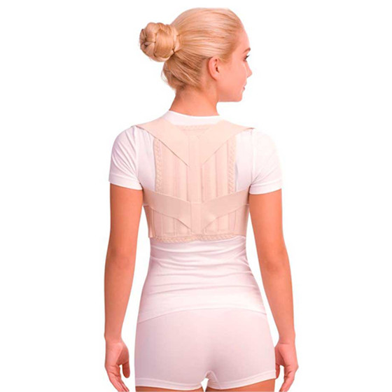 формирует и поддерживает правильную осанку за счет регулируемого разведения плеч с одновременной фиксацией и разгрузкой грудного отдела позвоночника;