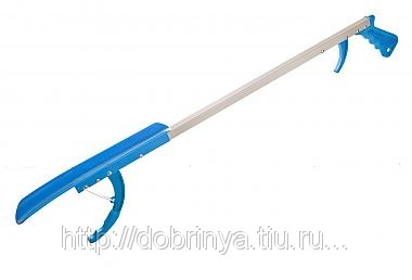 приспособление для одевания обуви оснащено специальным курком-захватом и зажимом для пяточной стороны обуви на конце;