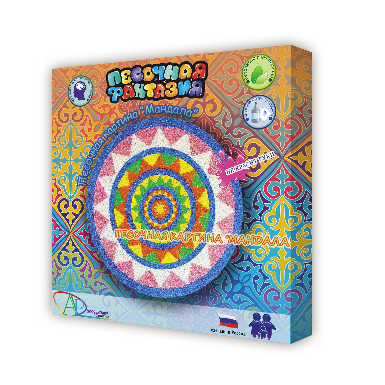 В набор входит: трафарет (трехслойная картонная основа размером 21*21см. с вырезанным лазером контуром рисунка), 9 цветов песка в пакетах с zip-lock (общая масса 180гр.), подробная фото-инструкция.