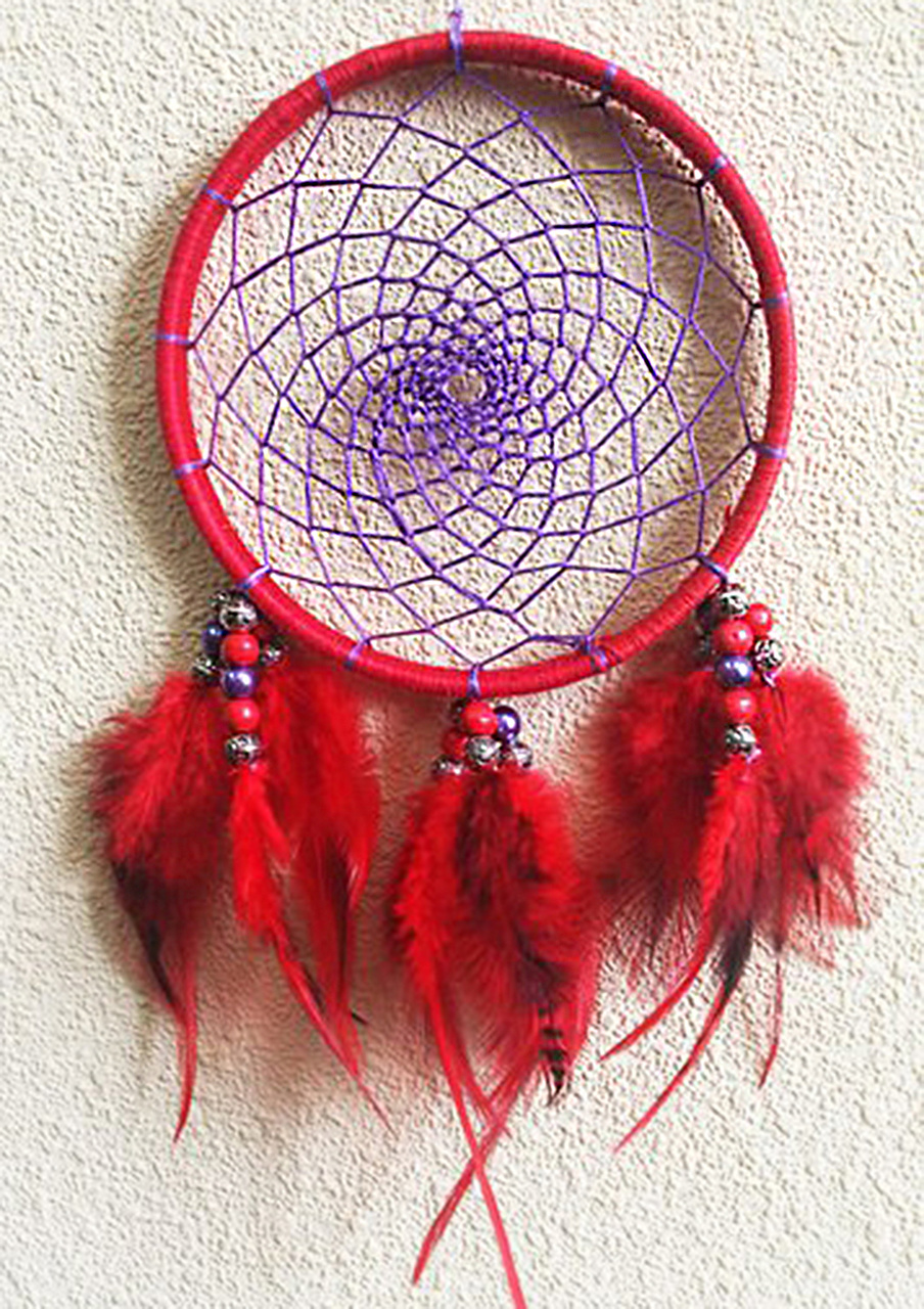 В набор входит: деревянный обруч (D=130мм); нитки х/б, 2 цвета: темно-красный (2шт.), сиреневый (1 шт); бусины(