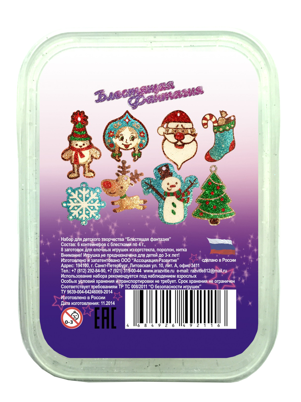 8 заготовок для елочных игрушек из оргстекла, поролон, нитка, подробная инструкция